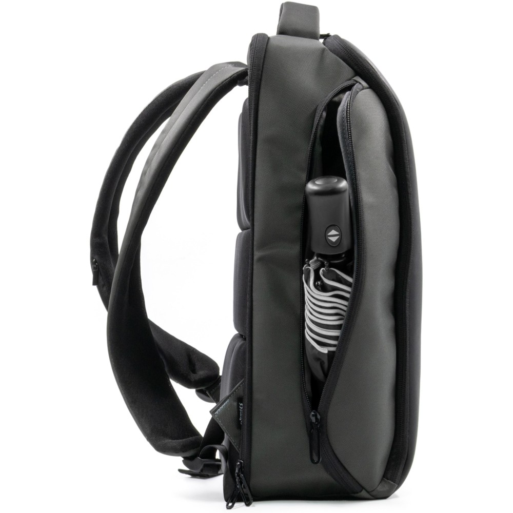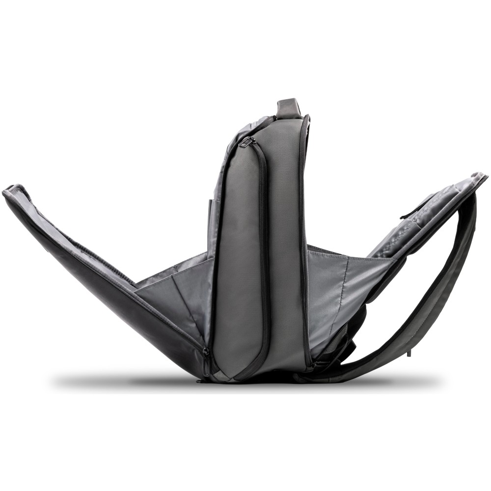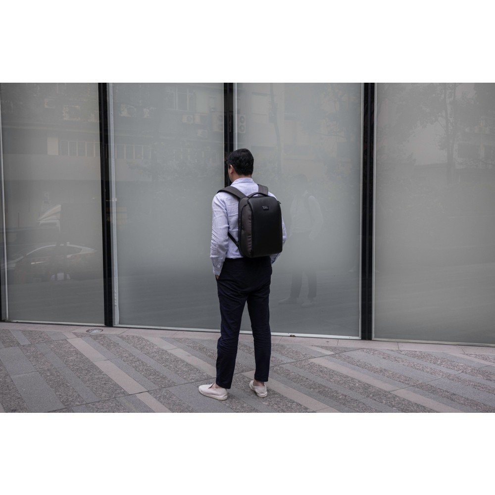 The Virtuo Apex Backpack combines sustainability, functionality, and premium craftsmanship in one sleek design. Made from 800D water- and stain-repellent recycled ballistic fabric and accented with vegan leather, it offers a 22 l capacity with a padded compartment for laptops up to 16 inches. Designed for work, travel, and daily use, it features an anti-theft back plate compartment, integrated eyewear compartment, two side compartments, and a trolley strap. Soft-touch back ventilation padding adds comfort, making the Apex a reliable and stylish companion wherever you go.