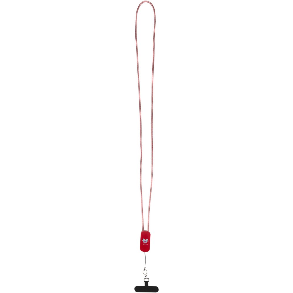 Stay charged and connected on the go with the Anser smartphone lanyard. Made from recycled materials, it includes a built-in 27W 5-in-1 charging cable with USB-A and Type-C input and Type-C and Lightning output. A transparent insert secures your phone through its case, combining hands-free convenience with fast charging in one practical accessory.