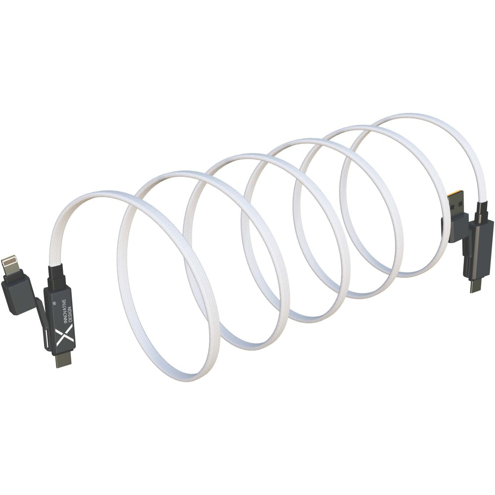 Super fast 60W magnetic charging cable that powers smartphones, tablets, and laptops. The 1-metre flat cable features Type-C and Lightning connectors, cords made from recycled plastic bottles, and durable zinc alloy end caps. With dual USB-A and USB-C input, it ensures 100% compatibility with the latest computer models. Fully compatible with Apple CarPlay and Android Auto. Customisation is available via laser engraving on the zinc end cap. Supplied in a recyclable TPU pouch with a recycled paper insert.
