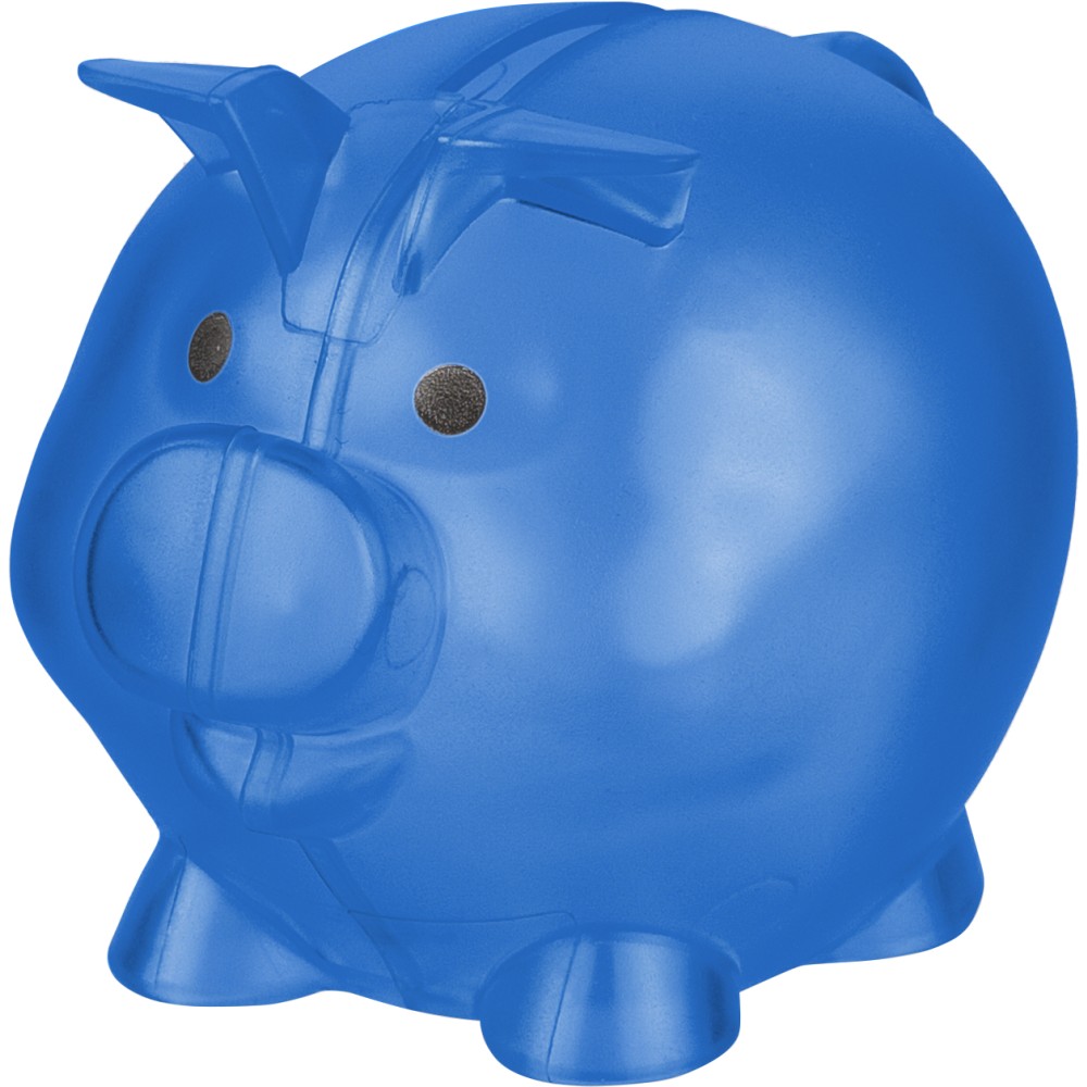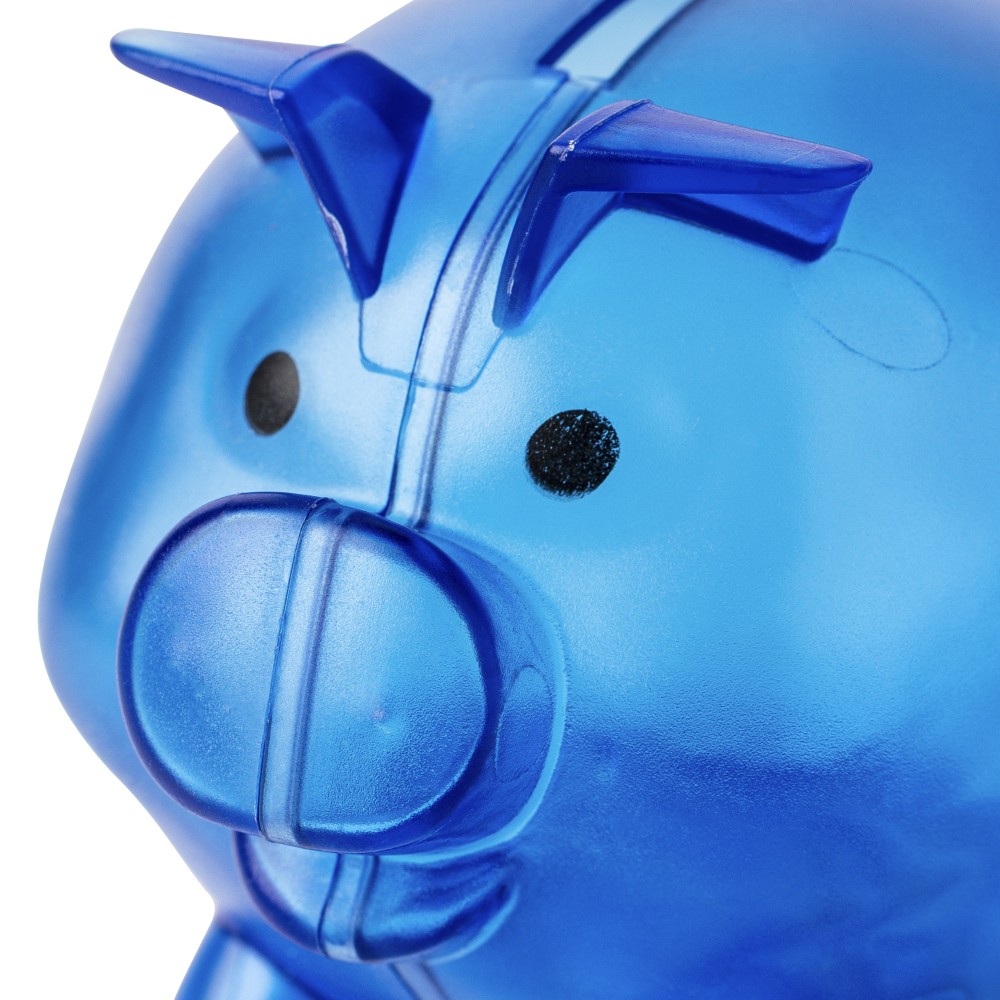 Recycled PS plastic piggy bank Vivi, cobalt blue
