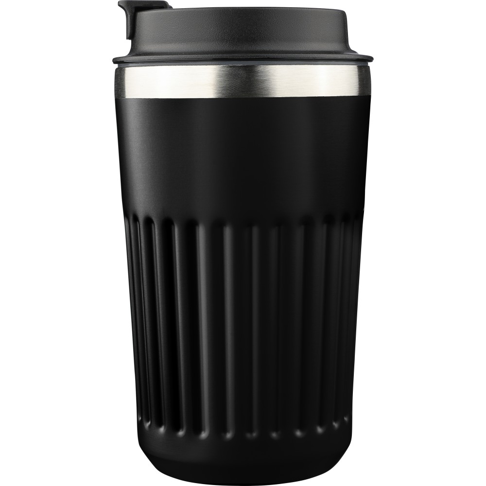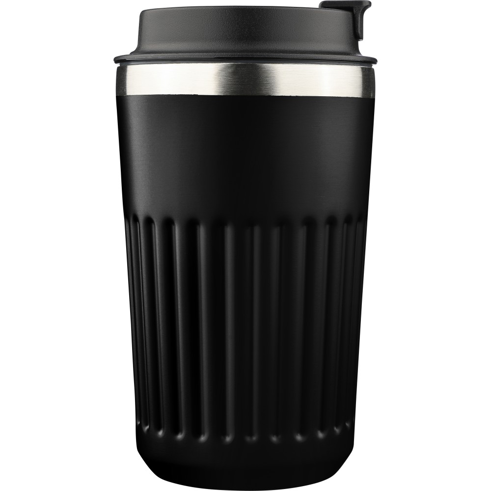 Recycled stainless steel travel mug (400 ml) Chiara, black