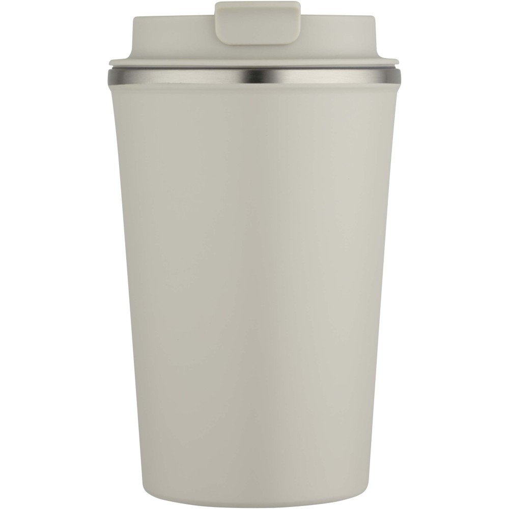 Designed for drinks on the go, this double-wall, vacuum-insulated stainless steel coffee tumbler keeps beverages at the right temperature for longer. A twist-on lid allows smooth opening and closing while making the drink easy to enjoy, and the matte coating adds a sleek finish. Volume capacity: 350 ml.