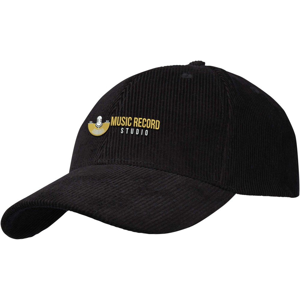 Hutton 6 panel recycled corduroy cap, Solid black