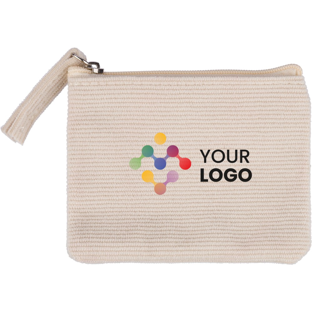 Corduroy zippered key wallet with secure zipper closing.