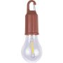 ABS lightbulb (60 lumens) with a 400mAh rechargeable battery. USB-C charging type. Features a metal clip and three light modes. IPX3.