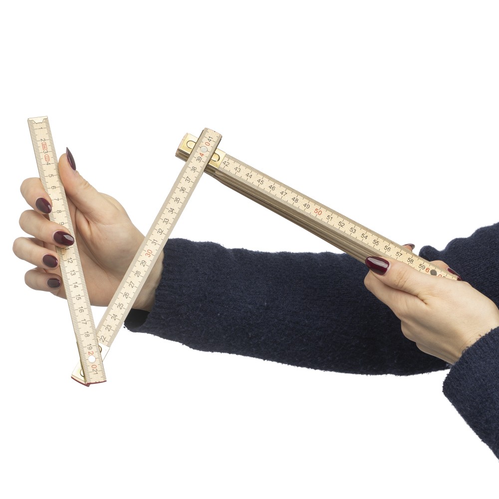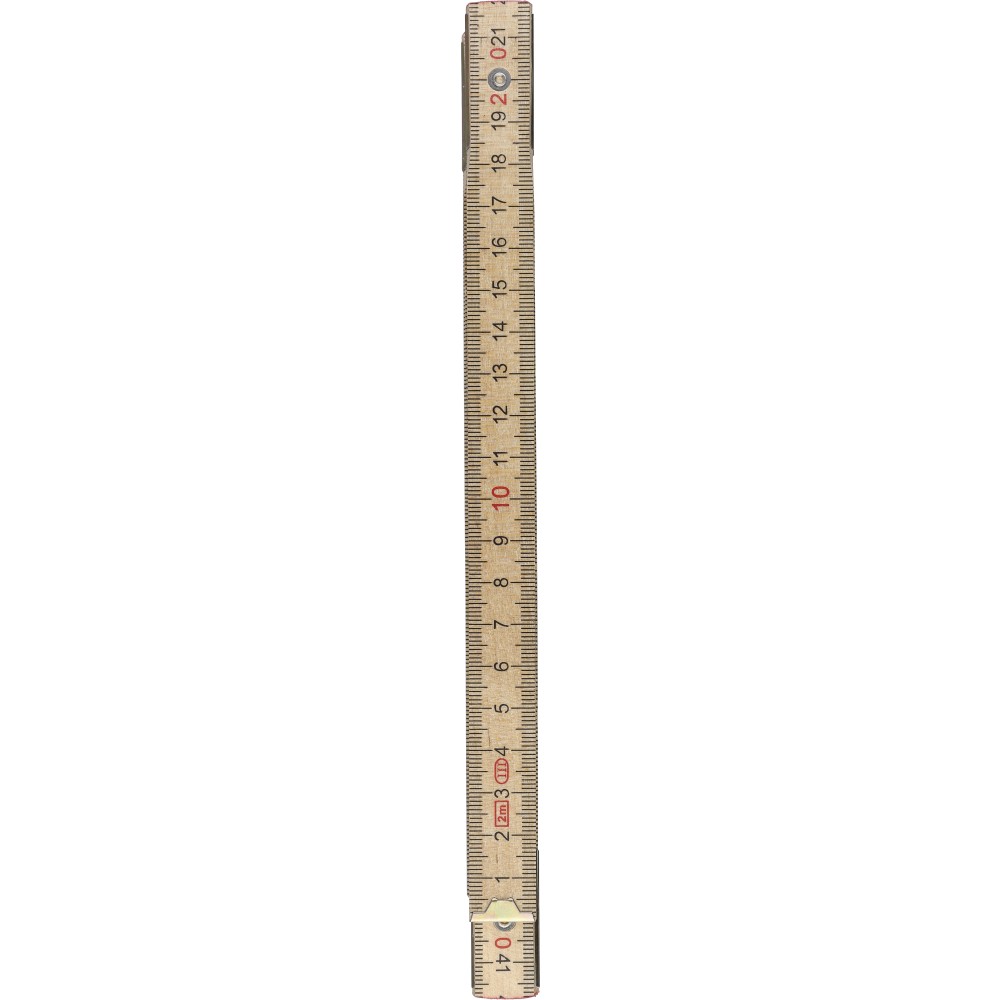 Birchwood foldable ruler with centimeter indication and 2 meter length. Consists of 10 segments with steel hinges for durability and stability, including a corner lock for secure use. Supplied in a paper sleeve.