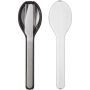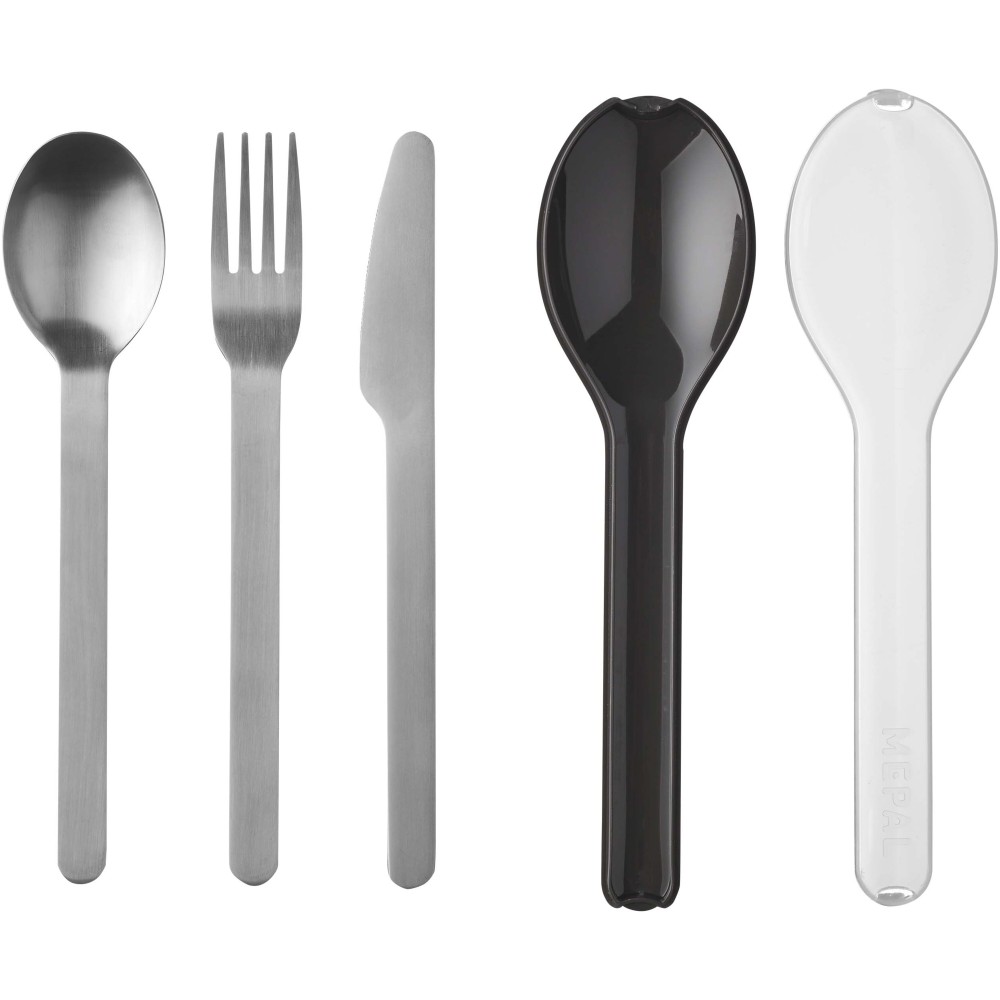 This stylish and practical Ellipse cutlery set includes a knife, fork, and spoon, all made of stainless steel. The cutlery is stored in a compact plastic holder. Dishwasher safe.
