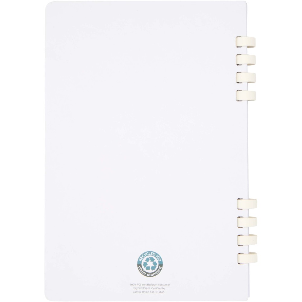 The Fil A5 hardcover spiral notebook with 60 lined sheets is made of 70 g/m2 RCS certified recycled paper. Made entirely from recycled materials, it?s a practical option that?s easier to dispose of and recycle after use.