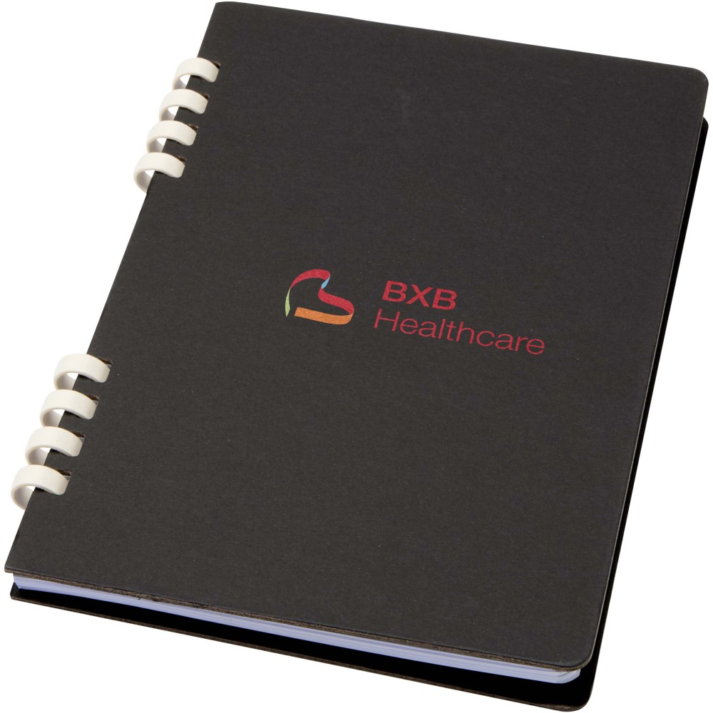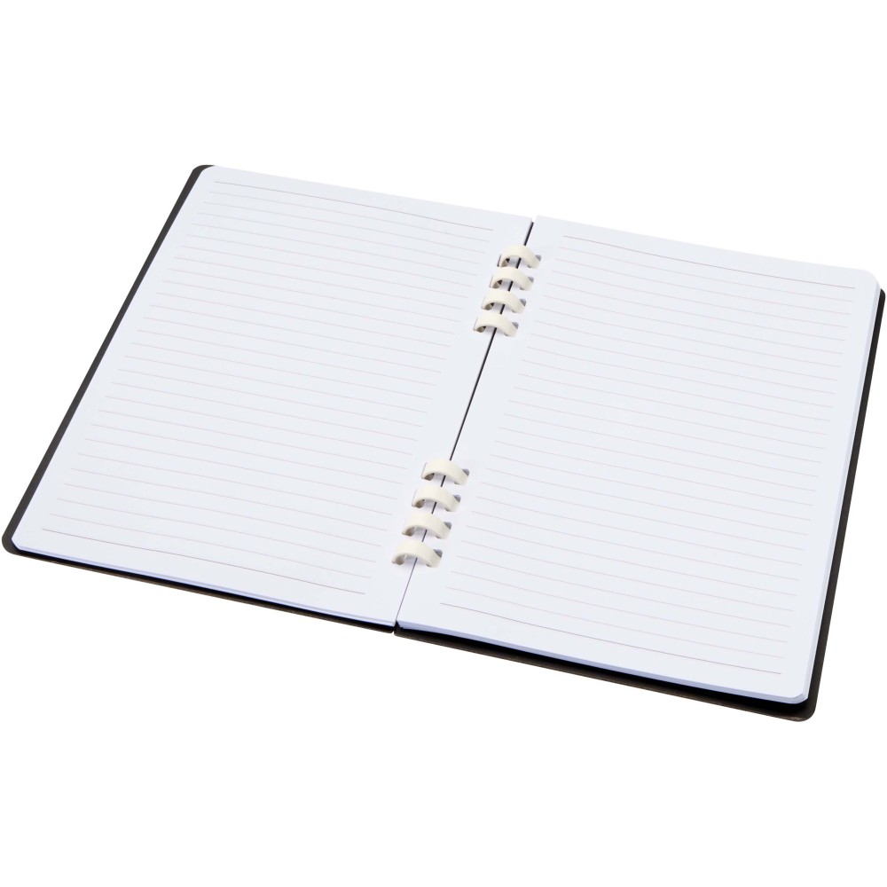 The Fil A5 hardcover spiral notebook with 60 lined sheets is made of 70 g/m2 RCS certified recycled paper. Made entirely from recycled materials, it?s a practical option that?s easier to dispose of and recycle after use.