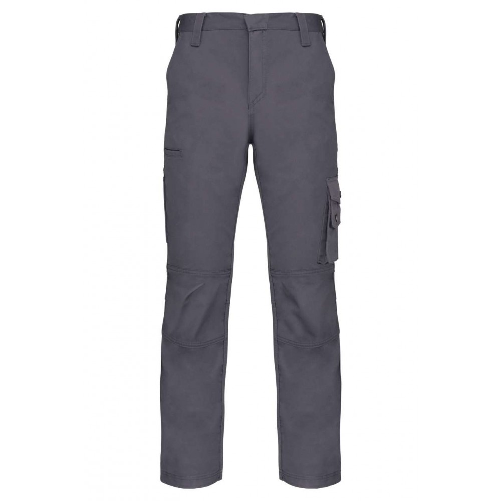 EX KA795. 65% polyester/35% cotton. Zip and button fastening. Crotch seam reinforced with triple topstitching. 3 front pockets, 3 rear pockets and 1 side pocket. Articulated knees for ease of movement. Certified STANDARD 100 by OEKO-TEX®N° CQ1007/7, IFTH.