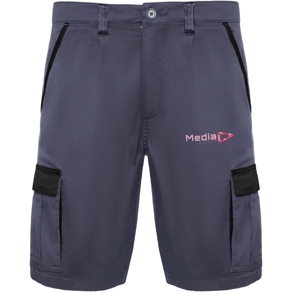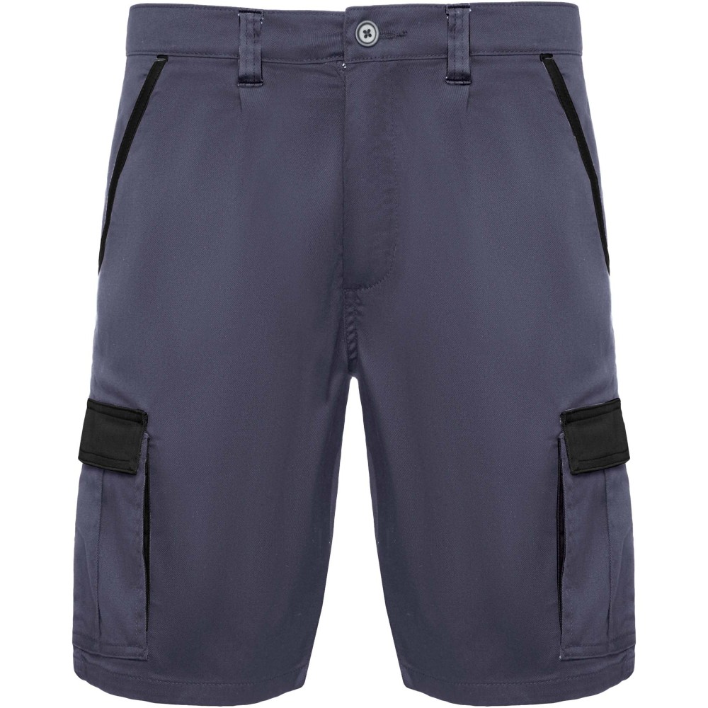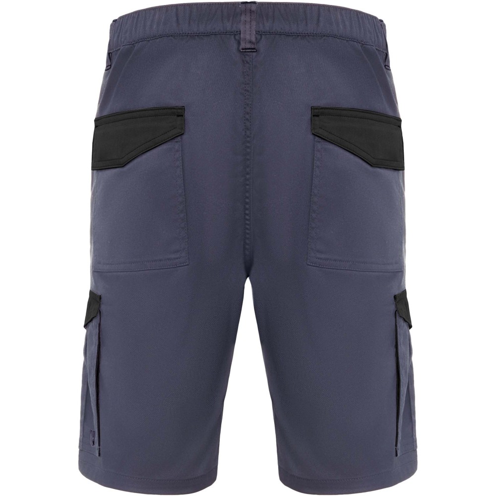 Workwear shorts in a colour combination design. Comfortable and adjustable fabric. Back elastic waistband. Contrasting belt loops, flaps, pleats and trims. Two front pockets. Two back pockets with flap and hook & loop fastening. Two pleated side pockets with flap and hook & loop fastening.