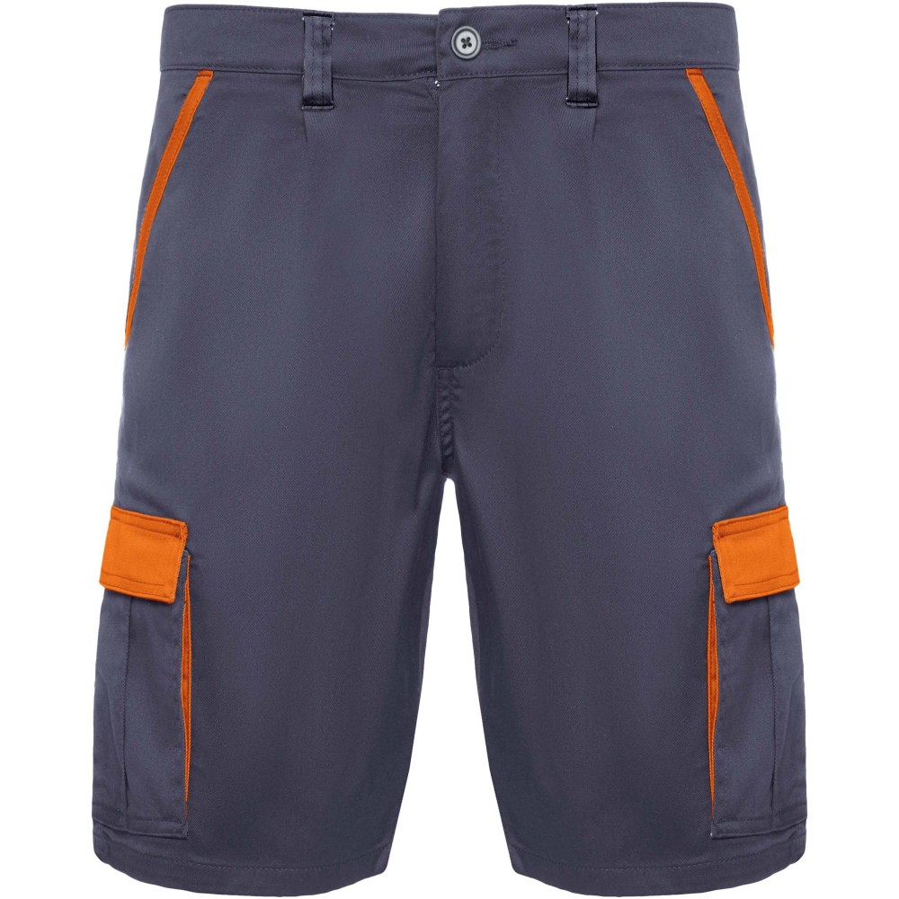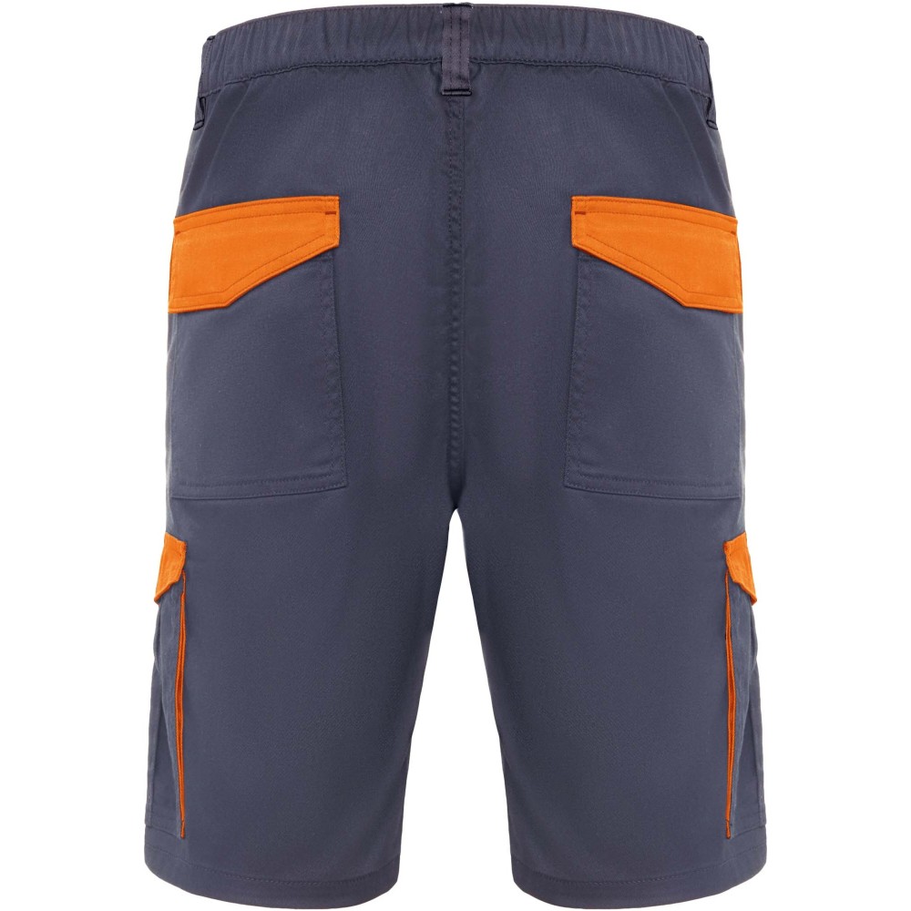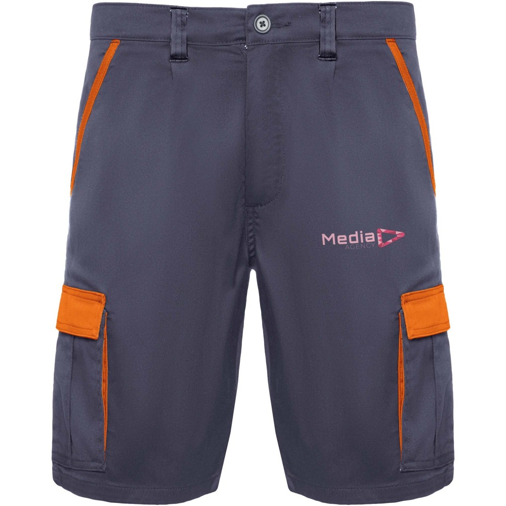 Workwear shorts in a colour combination design. Comfortable and adjustable fabric. Back elastic waistband. Contrasting belt loops, flaps, pleats and trims. Two front pockets. Two back pockets with flap and hook & loop fastening. Two pleated side pockets with flap and hook & loop fastening.