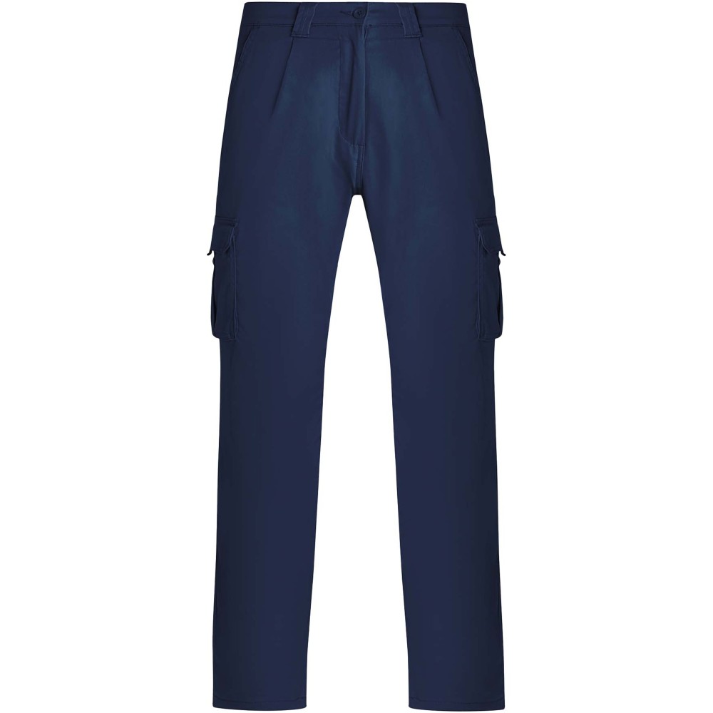 Long workwear trousers with elastane. Comfortable and adjustable fabric. Back adjustable elastic waist. Two front pockets. Two functional back pockets with flap and hook & loop fastening. Two functional side gusseted pockets with flap and hook & loop fastening. Contrasting seams.