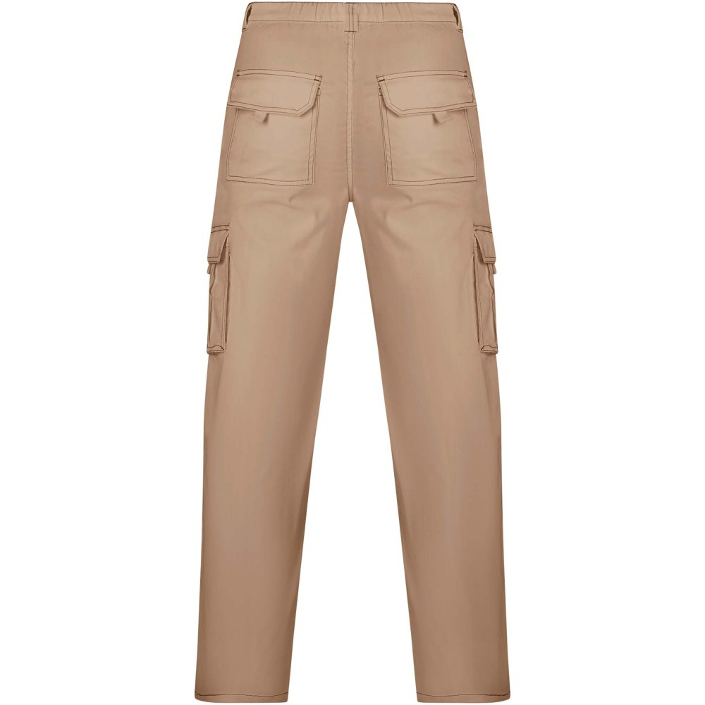 Long workwear trousers with elastane. Comfortable and adjustable fabric. Back adjustable elastic waist. Two front pockets. Two functional back pockets with flap and hook & loop fastening. Two functional side gusseted pockets with flap and hook & loop fastening. Contrasting seams.
