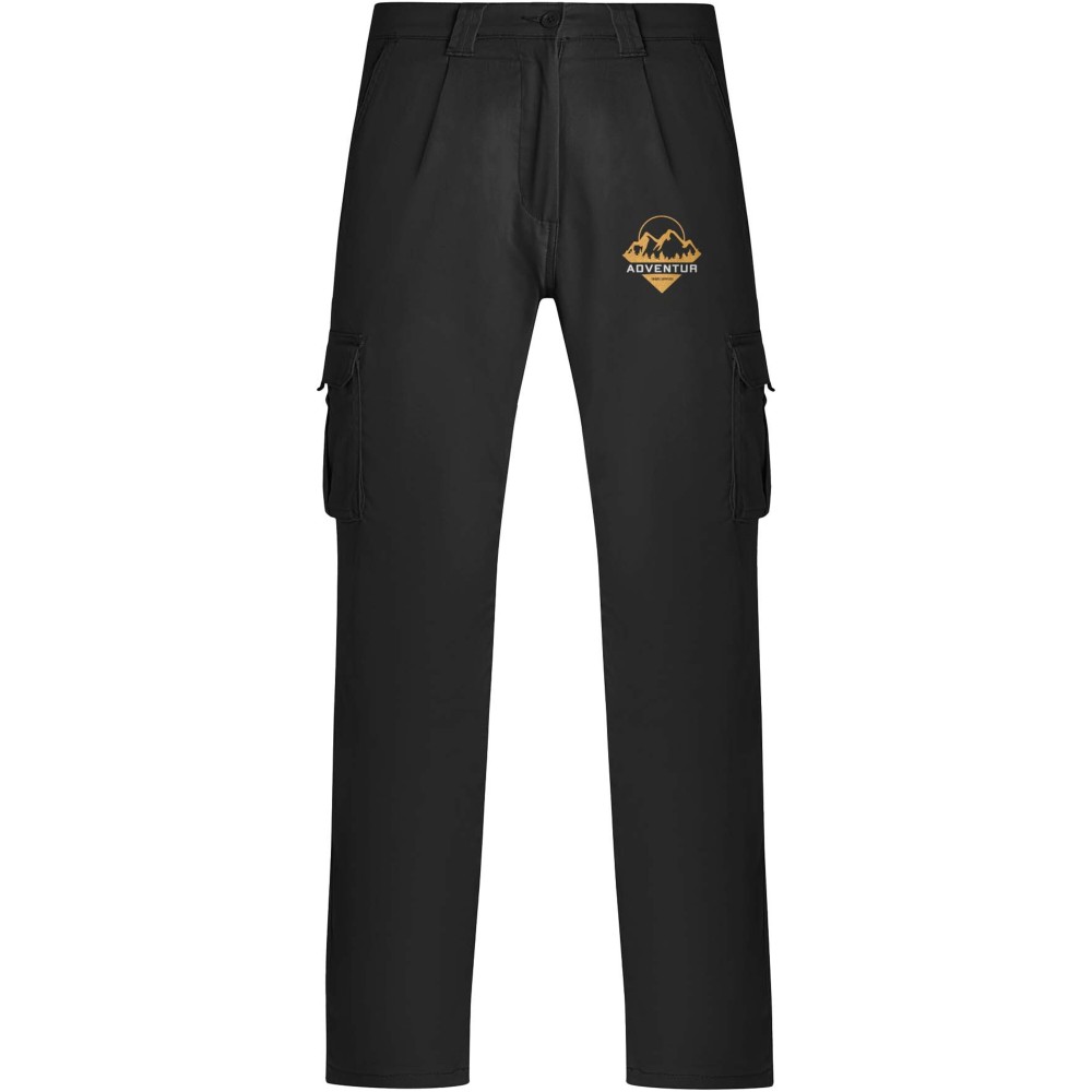 Long workwear trousers with elastane. Comfortable and adjustable fabric. Back adjustable elastic waist. Two front pockets. Two functional back pockets with flap and hook & loop fastening. Two functional side gusseted pockets with flap and hook & loop fastening. Contrasting seams.