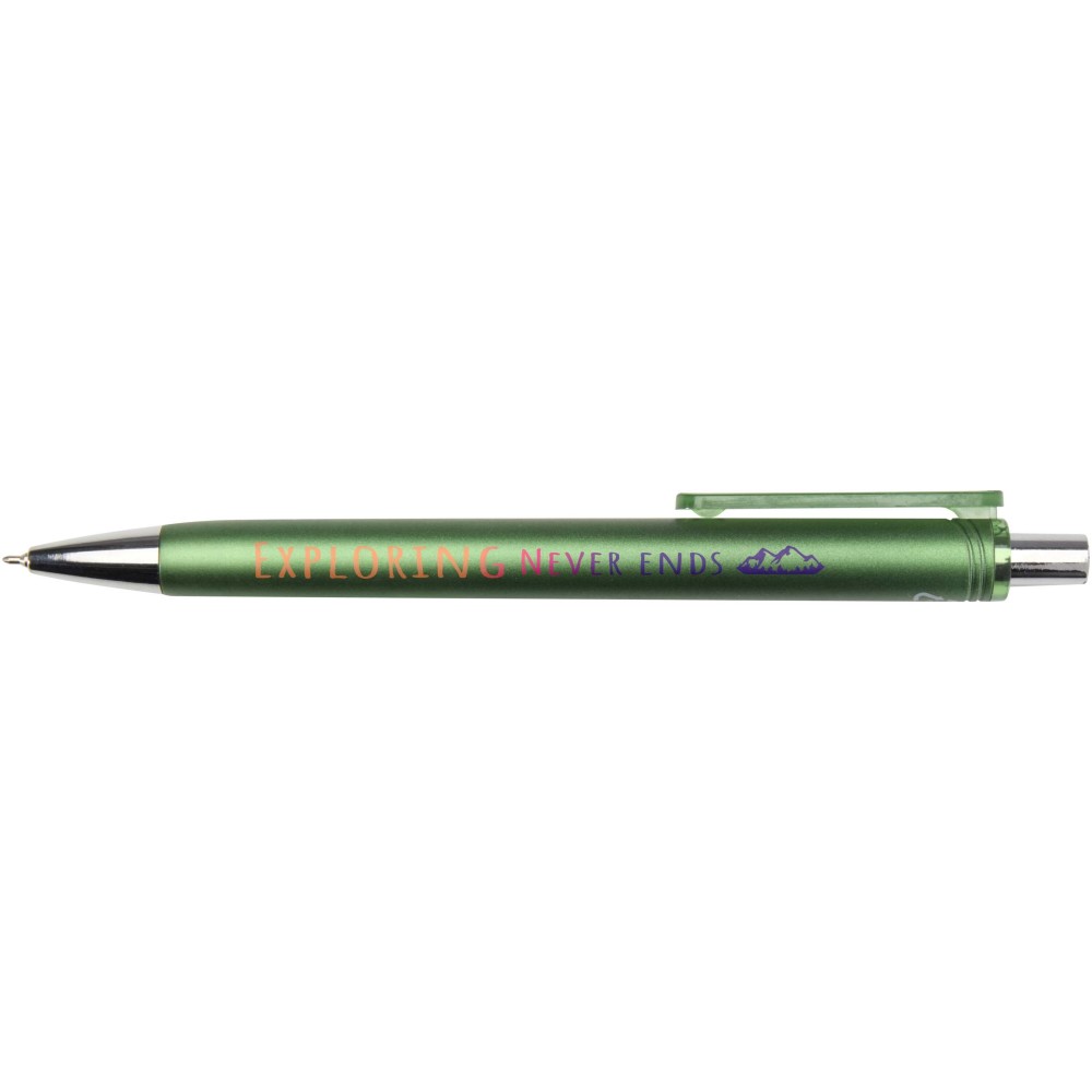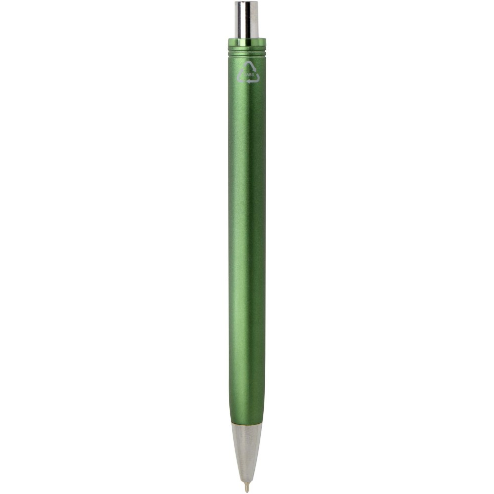 The Feld ballpoint pen with metallic finish combines everyday functionality with a sleek look. Made from RCS certified recycled ABS plastic, it features a shiny metal sprayed finish with polished chrome accents. Its smooth push mechanism and semi-gel ink refill ensure a comfortable and smooth writing experience. Pen ink colour: black. Writing length: 500 m. Niz size: 0.7 mm.