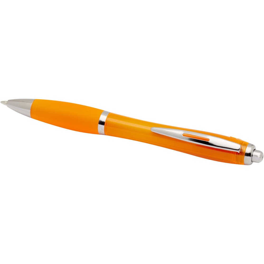 The Nash recycled plastic click-action ballpoint pen features a stylish curvy design with a transparent coloured barrel with silver trims and a matching colour soft grip for comfortable writing. Made from RCS certified recycled ABS plastic, it helps reduce the use of virgin materials while maintaining durability. A rABS logo is featured on the back, highlighting its recycled content. Ink colour: Blue. Nib size: 1.0 mm. Writing length: 1000 metres.