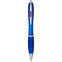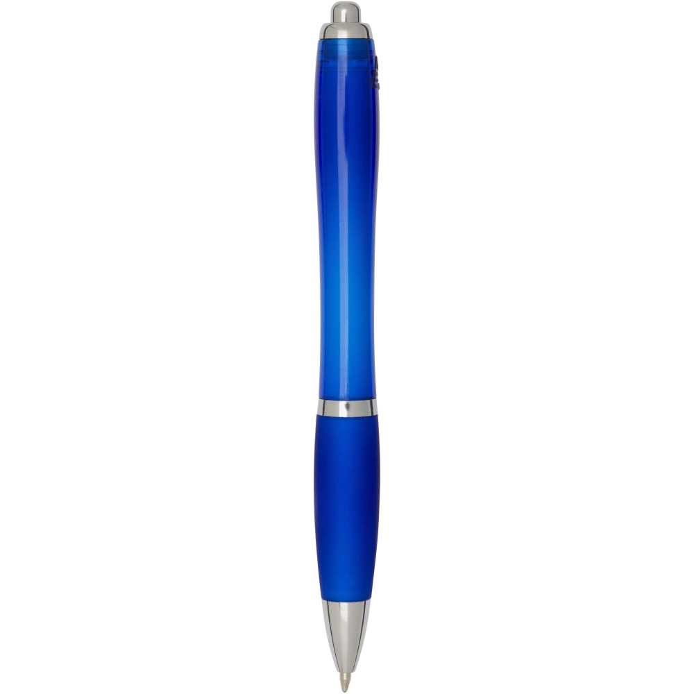 The Nash recycled plastic click-action ballpoint pen features a stylish curvy design with a transparent coloured barrel with silver trims and a matching colour soft grip for comfortable writing. Made from RCS certified recycled ABS plastic, it helps reduce the use of virgin materials while maintaining durability. A rABS logo is featured on the back, highlighting its recycled content. Ink colour: Blue. Nib size: 1.0 mm. Writing length: 1000 metres.