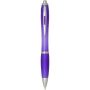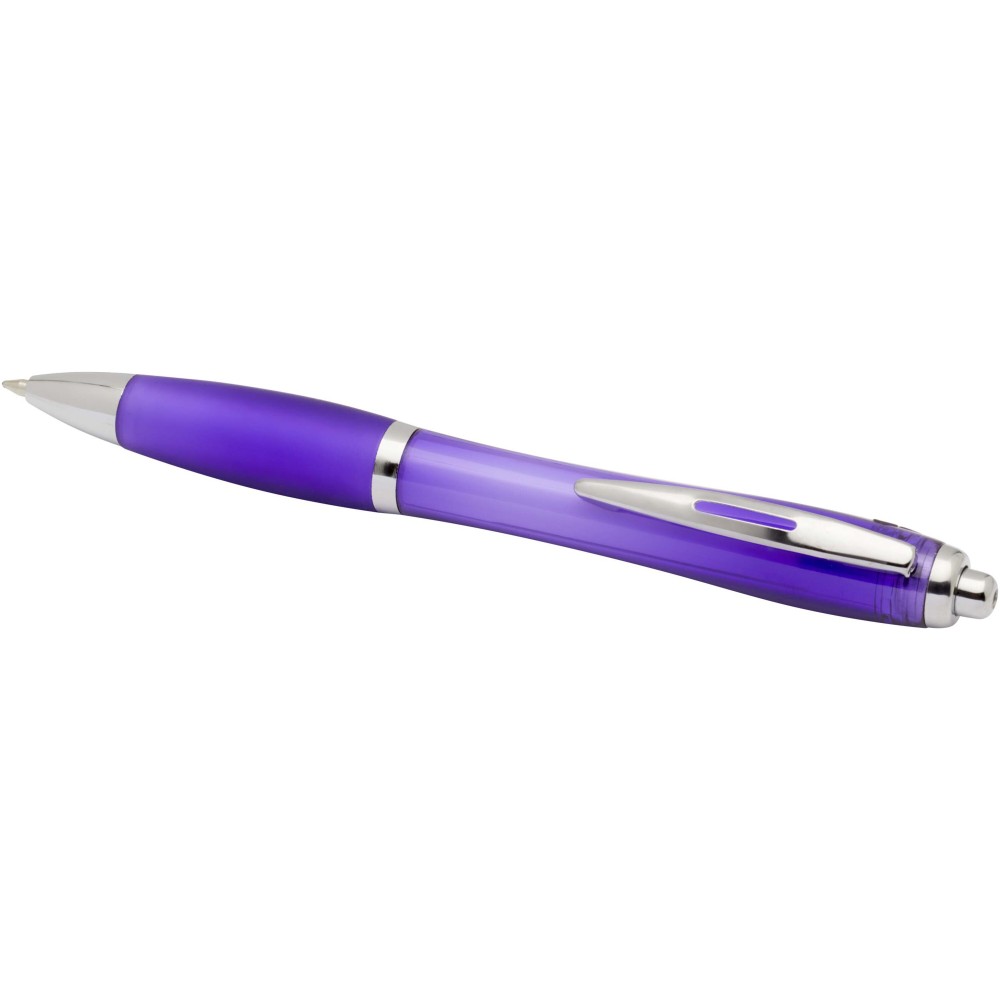 The Nash recycled plastic click-action ballpoint pen features a stylish curvy design with a transparent coloured barrel with silver trims and a matching colour soft grip for comfortable writing. Made from RCS certified recycled ABS plastic, it helps reduce the use of virgin materials while maintaining durability. A rABS logo is featured on the back, highlighting its recycled content. Ink colour: Black. Nib size: 1.0 mm. Writing length: 1000 metres.