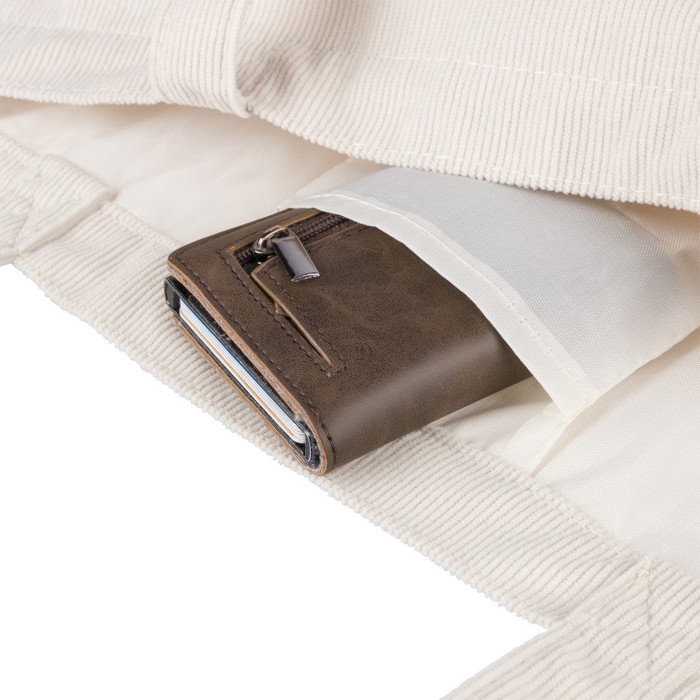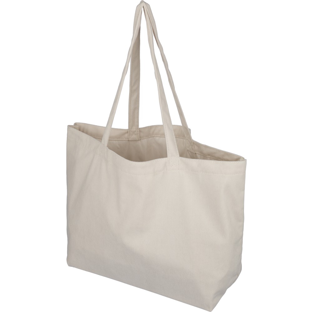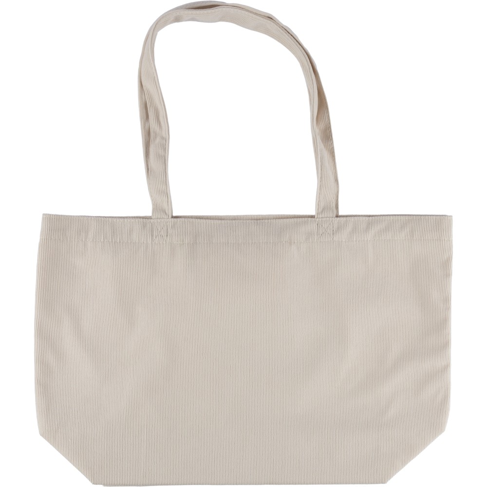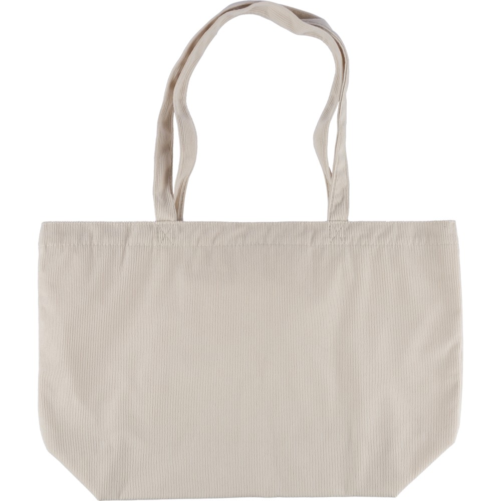 Corduroy tote bag with long handles (2.5 x 60 cm). Features a spacious main compartment with size 51 x 15 x 33 cm and an inside pocket (10 x 10 cm). Suitable for everyday use.