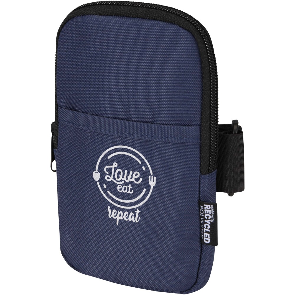 Crafted from water-repellent GRS-certified recycled polyester, the Byron bottle pouch securely attaches to your favourite water bottle or tumbler, keeping essentials close at hand while you stay hydrated. Featuring a strong hook-and-loop fastening and elastic webbing with anti-slip grips, it holds firmly to your drinkware. The zipped main compartment safely stores valuables, including most smartphones, while the front slip pocket offers quick access to smaller items such as bank cards, ID or keys. Ideal for the gym or outdoor adventures, the Byron pouch frees up your pockets and keeps you organised, all while supporting more sustainable materials.