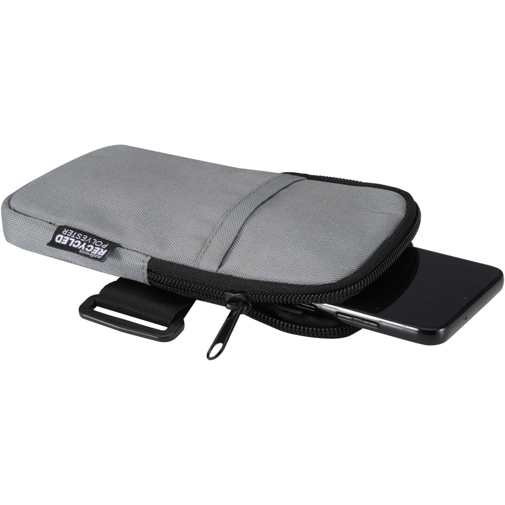 Crafted from water-repellent GRS-certified recycled polyester, the Byron bottle pouch securely attaches to your favourite water bottle or tumbler, keeping essentials close at hand while you stay hydrated. Featuring a strong hook-and-loop fastening and elastic webbing with anti-slip grips, it holds firmly to your drinkware. The zipped main compartment safely stores valuables, including most smartphones, while the front slip pocket offers quick access to smaller items such as bank cards, ID or keys. Ideal for the gym or outdoor adventures, the Byron pouch frees up your pockets and keeps you organised, all while supporting more sustainable materials.