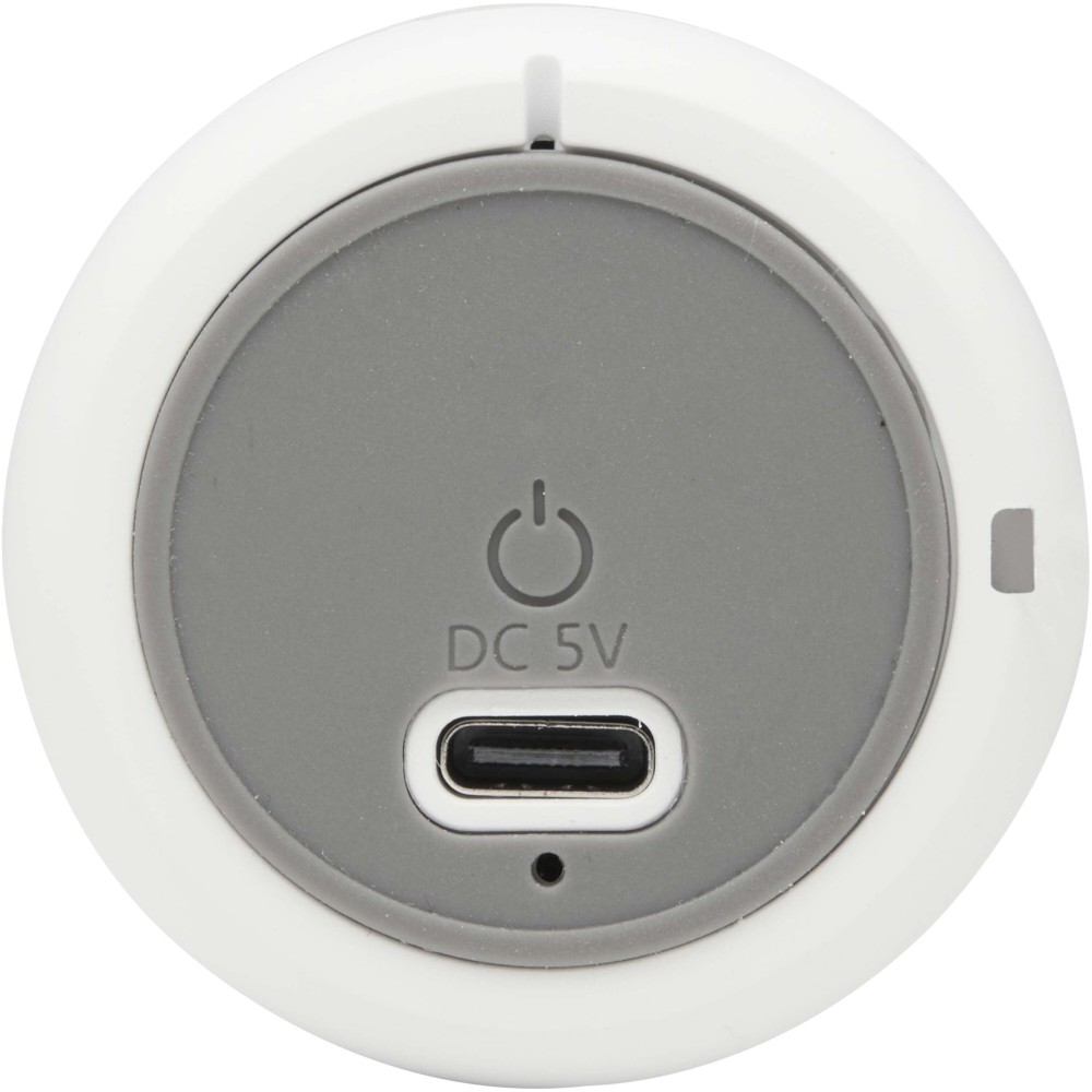Take your music anywhere with the compact Velkis Bluetooth® 3W speaker. Made from recycled plastic, it features a convenient wrist strap and simple one-button control. With a 300 mAh battery and Type-C charging, it offers the perfect portable audio solution. A 30 cm USB-A to Type-C charging cable is included.