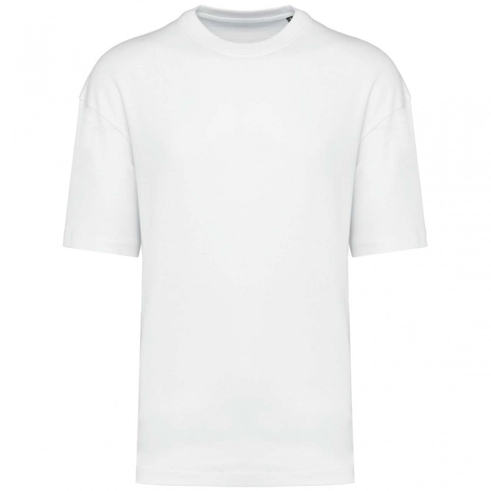 100% cotton (except in the Oxford Grey colourway: 90% cotton and 10% viscose). Carded cotton. Jersey fabric. Oversized fit with dropped shoulders. Cut and sewn. Shoulders backed with silicone for a better fit. Round 1x1 ribbed tone-on-tone neckline with single overstitching. Matching taped neck. Single overstitching on the cuffs and the bottom of the garment. No brand label on the collar, only a size tag for easy decoration.