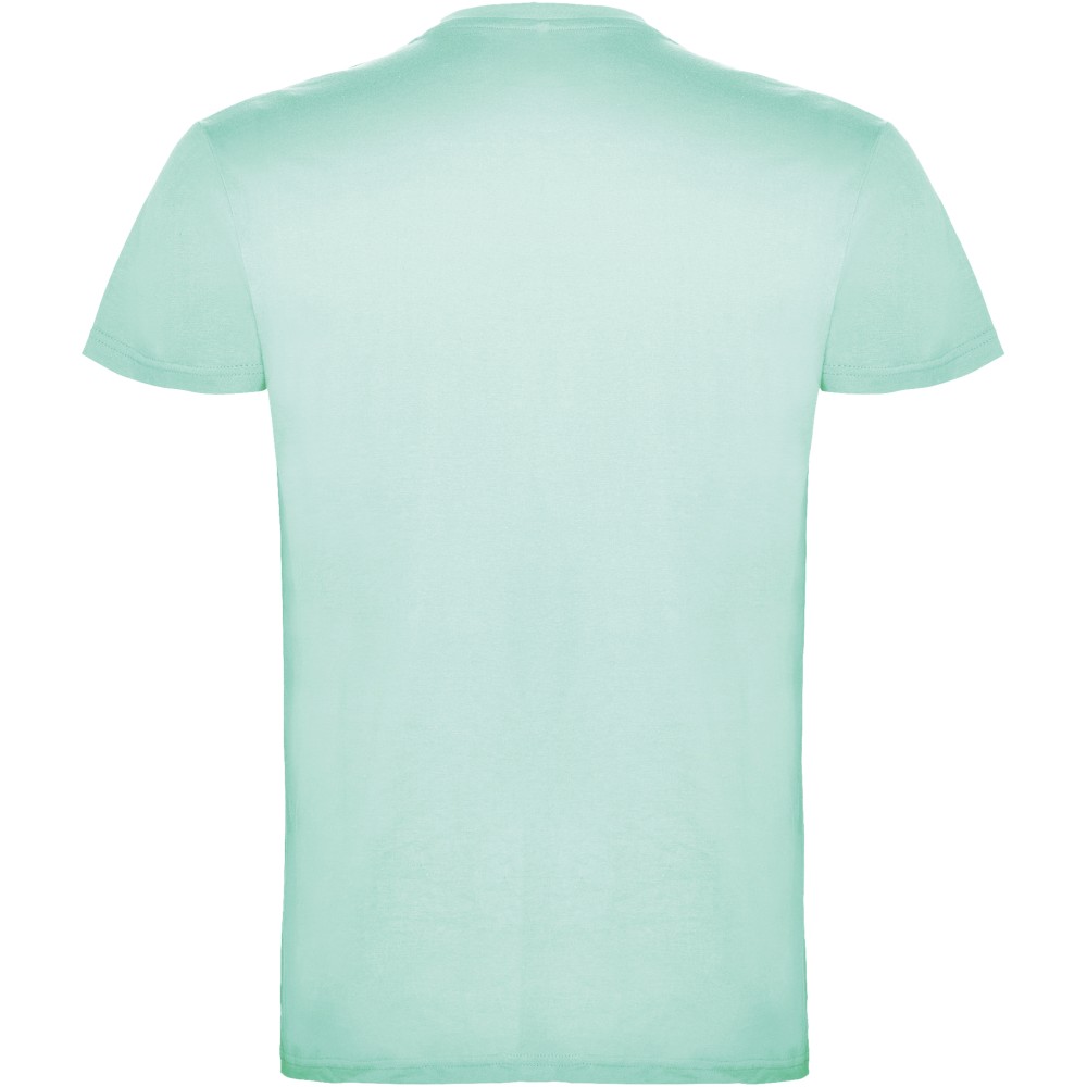 Short-sleeve t-shirt with double layer crew neck in elastane, made in tubular fabric for adults. Reinforced covered seams in collar. Removable label. The model is 190 cm and is wearing size L. Single Jersey knit of 100% Cotton, 155 g/m2.