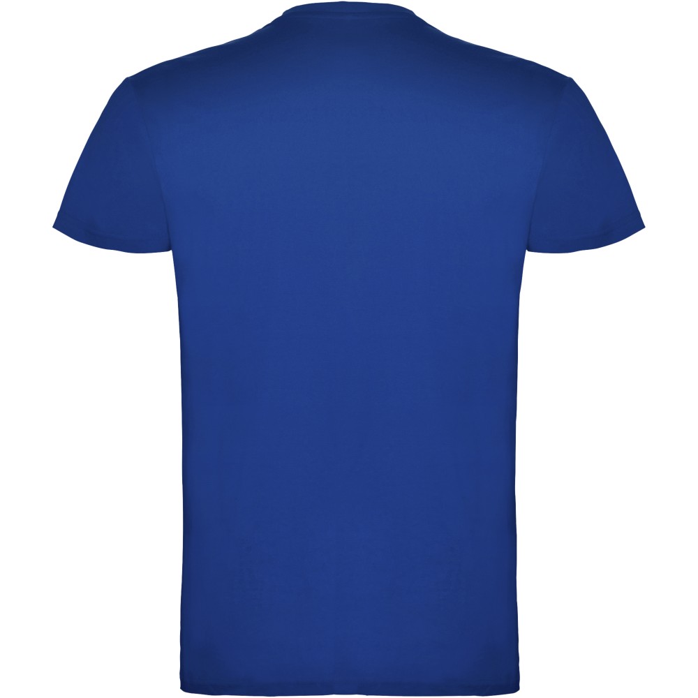 Short-sleeve t-shirt with double layer crew neck in elastane, made in tubular fabric for adults. Reinforced covered seams in collar. Removable label. The model is 190 cm and is wearing size L. Single Jersey knit of 100% Cotton, 155 g/m2.
