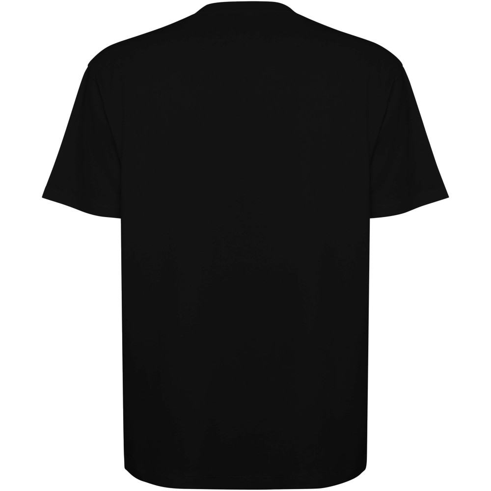 Oversized short sleeve t-shirt. Round collar trimmed in 2x1 rib with matching seam covers. Side seams. Wide double stitching on the sleeves and hem. Removable label.
