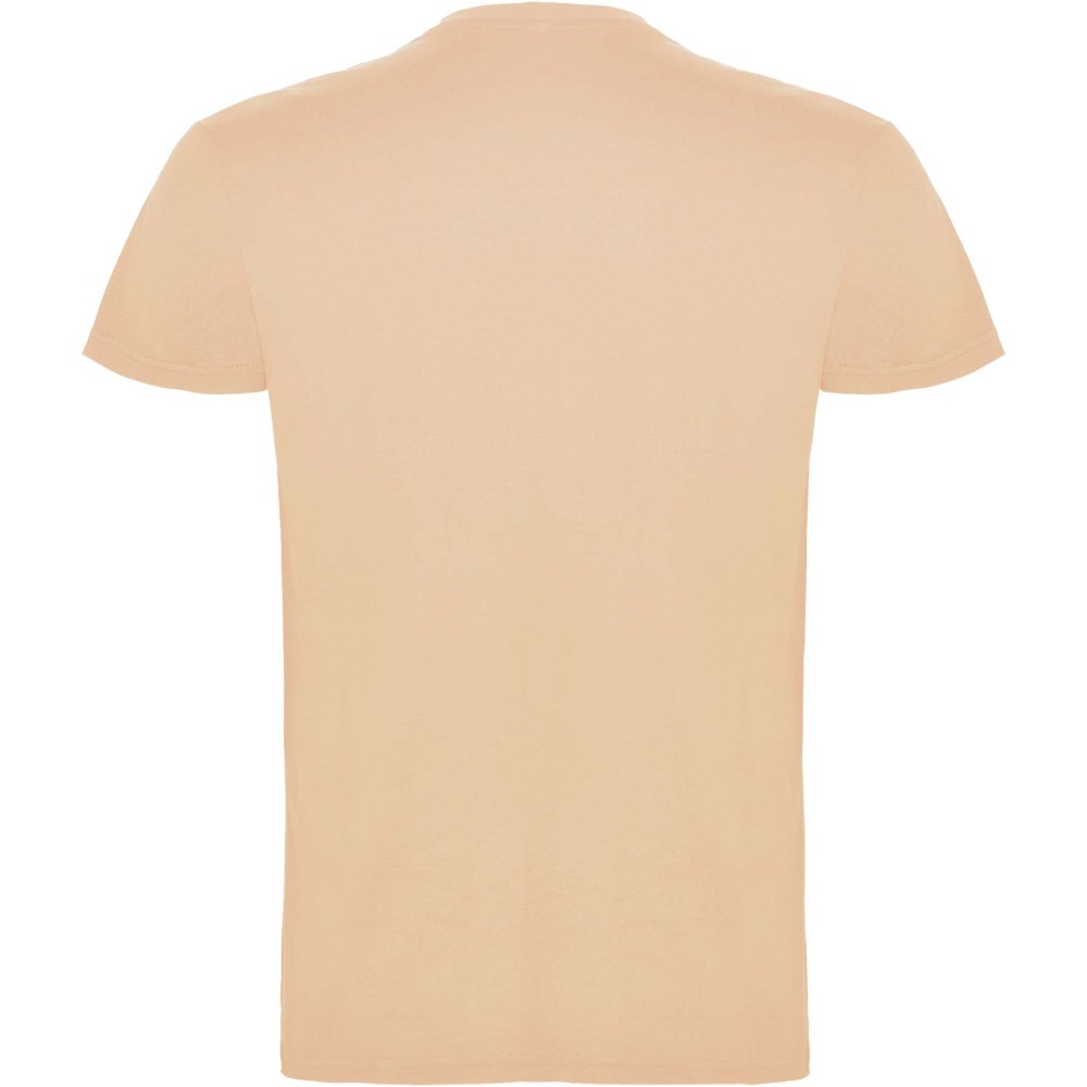 Short-sleeve t-shirt with double layer crew neck in elastane, made in tubular fabric for adults. Reinforced covered seams in collar. Removable label. The model is 190 cm and is wearing size L.