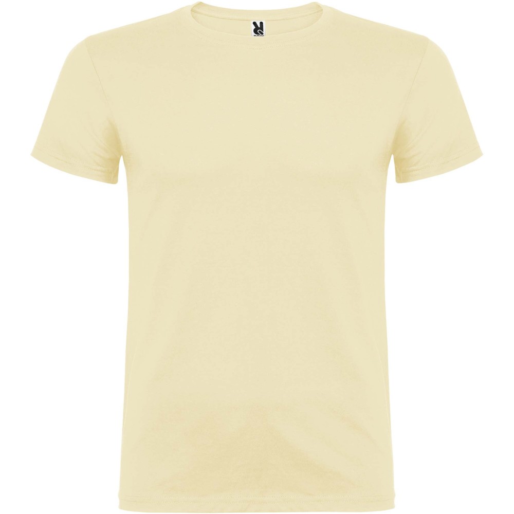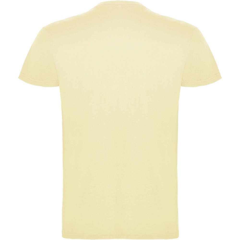 Short-sleeve t-shirt with double layer crew neck in elastane, made in tubular fabric for adults. Reinforced covered seams in collar. Removable label. The model is 190 cm and is wearing size L.