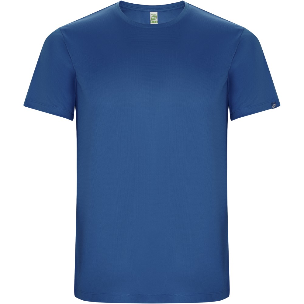 Technical short-sleeve t-shirt in recycled CONTROL-DRY polyester. Crew neck with matching covered seams. ECO logo label on sleeve. Packing in recycled material. Removable ECO label. Packing in recycled material. Technical fabric. The model is 180 cm and is wearing size M. Interlock knit of 50% Recycled Polyester and 50% Polyester, 135 g/m2.