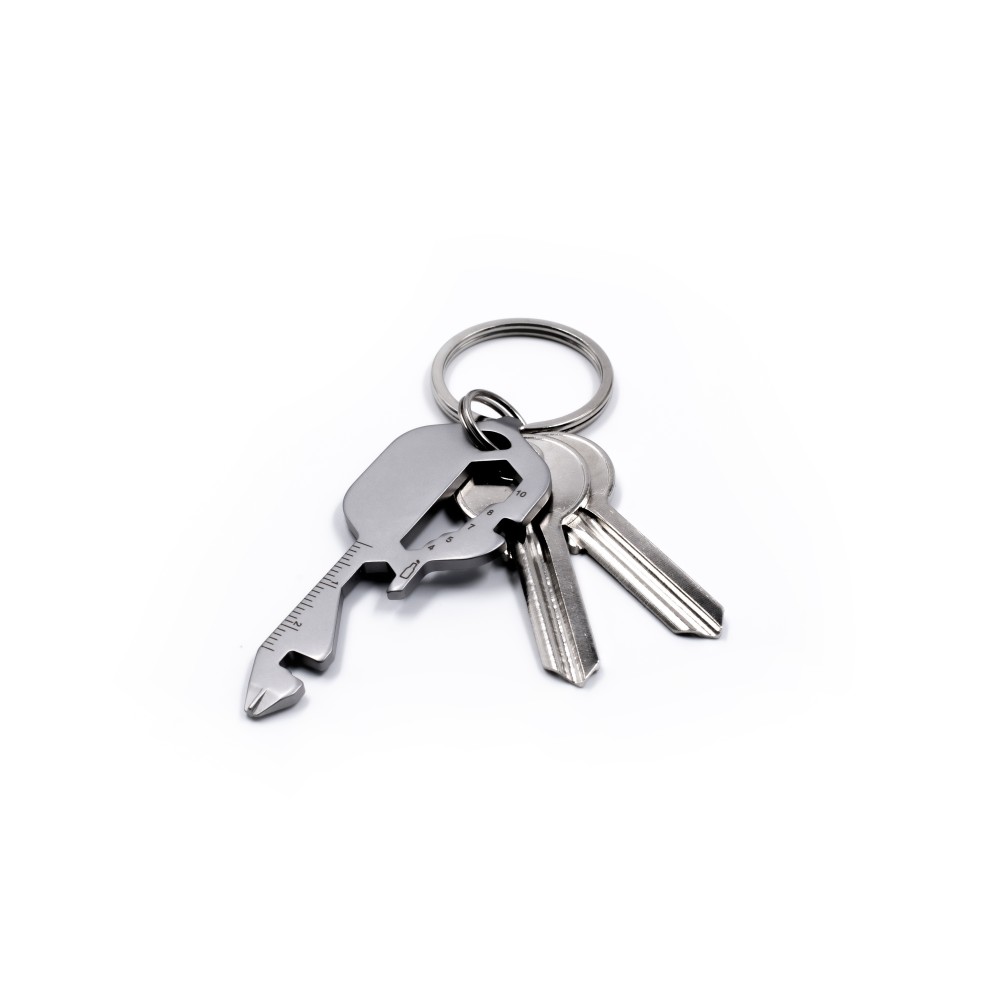 The Kee Shape multi-tool, crafted from durable 2CR13 martensitic stainless steel, combines 12 essential tools in a compact, key-shaped design for easy attachment to any keychain. It includes a bike spoke wrench, spanners (sizes 4-10 mm), bottle opener, Phillips and flat screwdrivers, wire bender, and both centimeter and inch rulers. Packaged in a sleek black box, it?s a convenient, all-in-one tool for everyday needs.