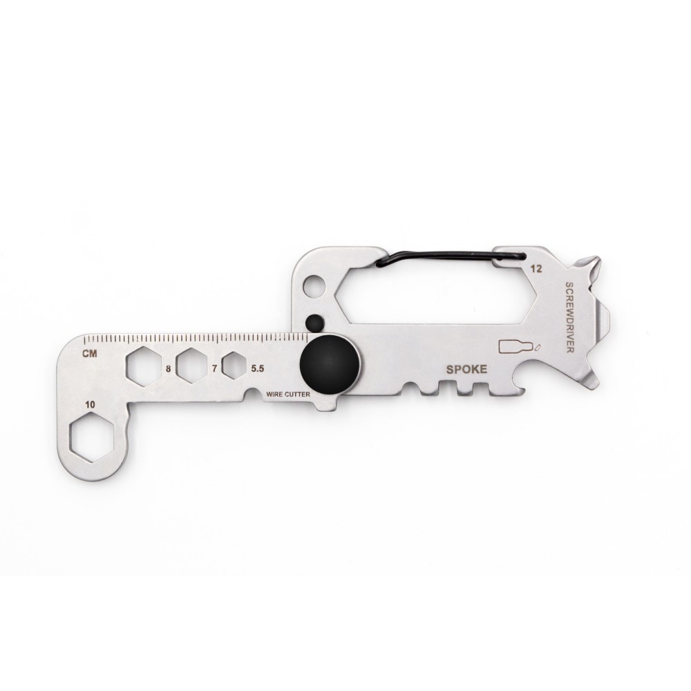 Crafted from hardened 420 martensitic stainless steel, the Twist multi-tool combines 8 essential tools in a compact twist design that fits comfortably in your hand. This versatile tool includes a wire cutter, bike spoke wrench, multiple spanners (5.5-12 mm), keychain, bottle opener, carabiner hook, Phillips and flat screwdrivers, and a ruler. Packaged in a black box with a soft foam insert for protection, it?s both sleek and practical, ideal for everyday tasks.
