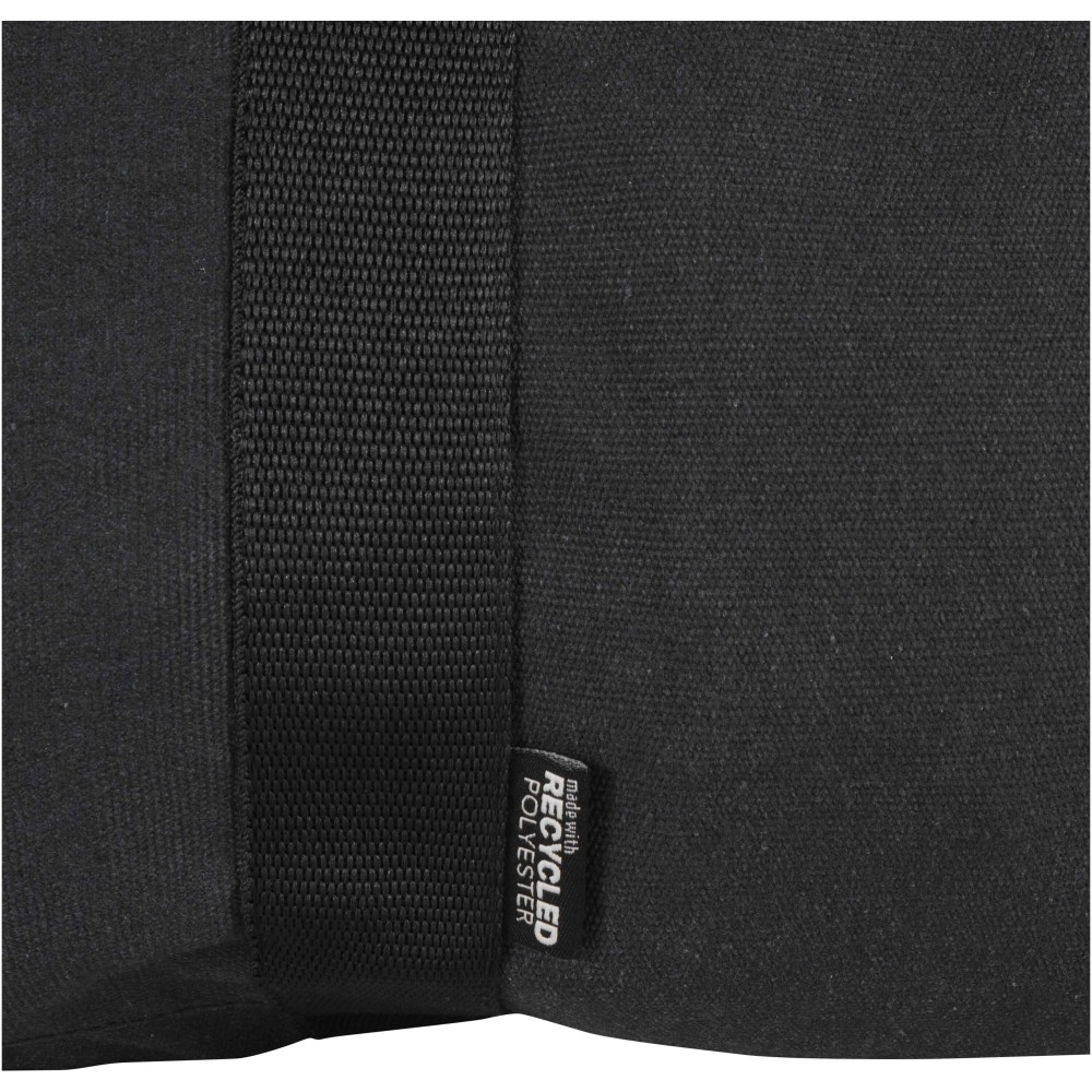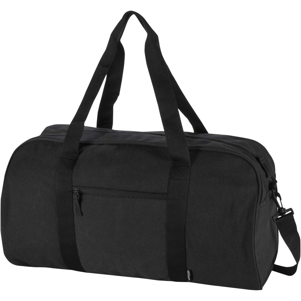 Made from GRS certified recycled water-repellent canvas, the Recanvas duffel bag combines durability with everyday versatility. It features a spacious main compartment, a zipped front pocket for quick-access items, soft carry handles, and detachable adjustable shoulder straps for flexible carrying options. Perfect for gym sessions, weekend trips, or daily use. Volume capacity: 40 litres.