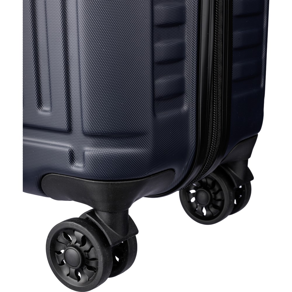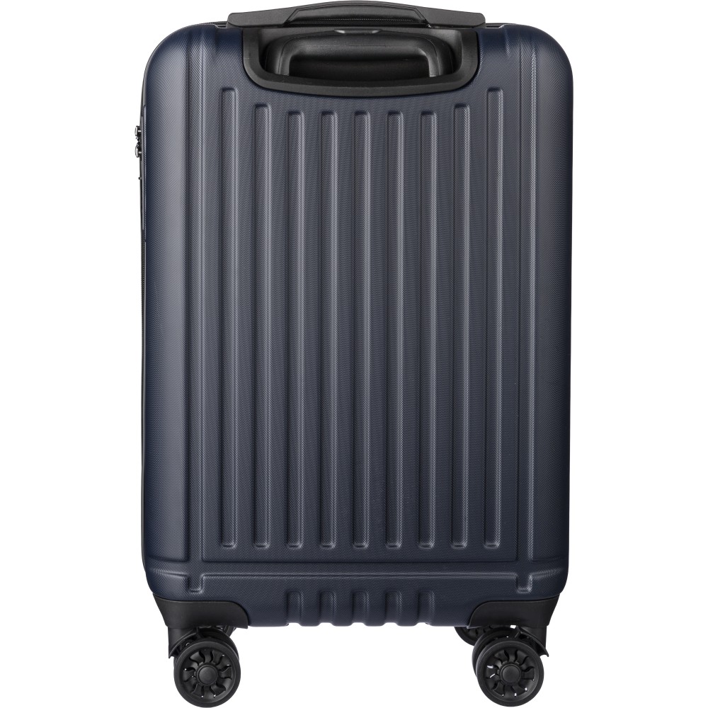 ABS luggage trolley (20 inch) with 8 wheels and a three-level handle system. Includes number lock and a separate plate for laser engraving.