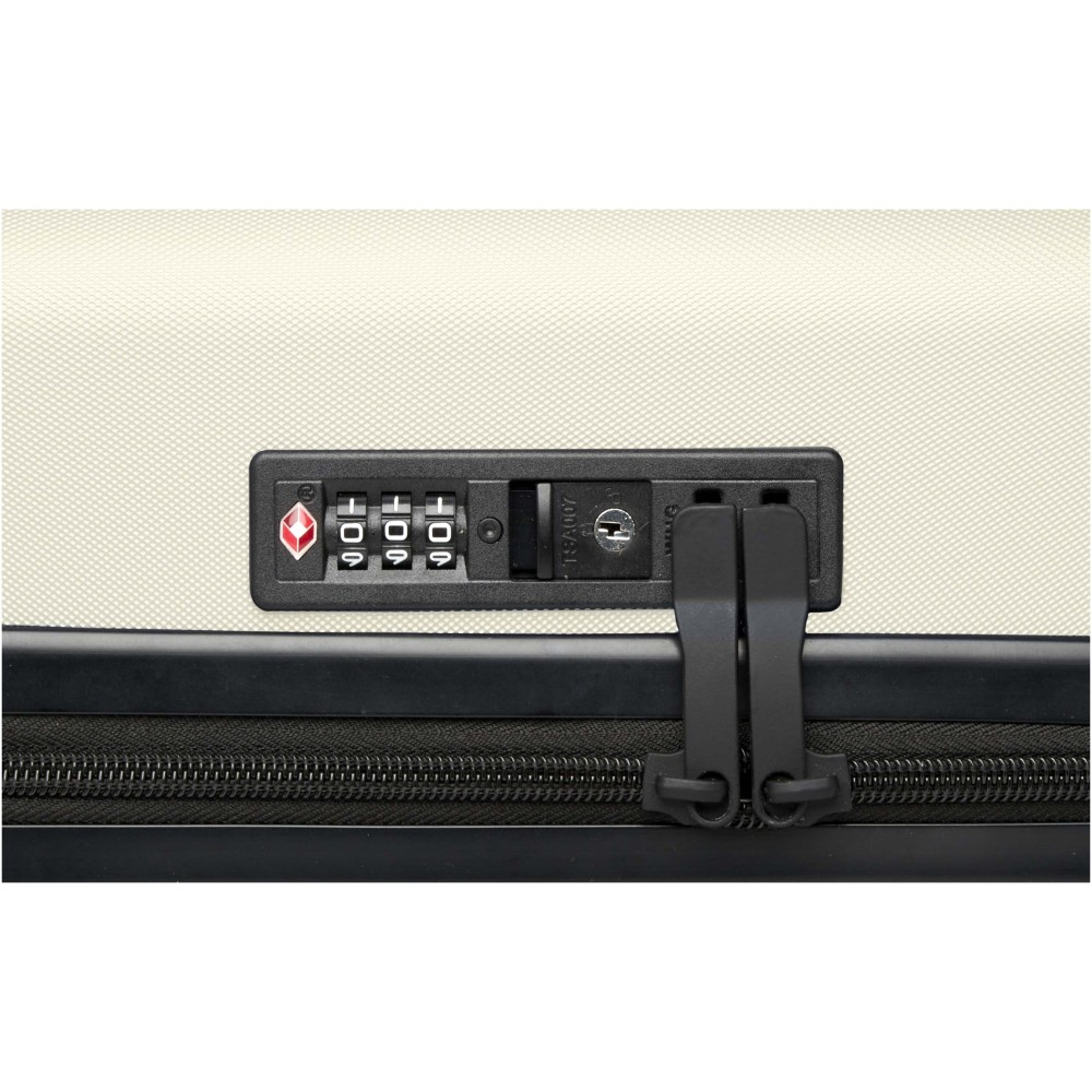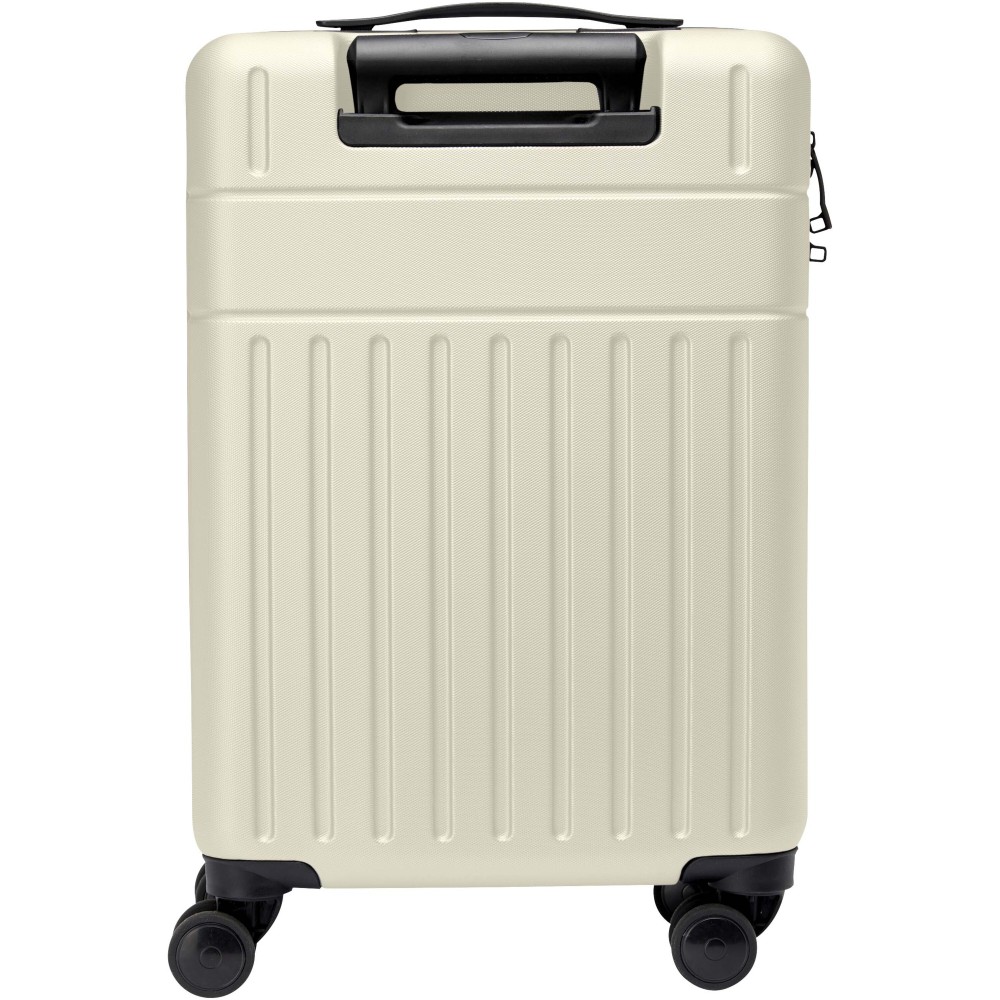 Constructed with impact-resistant recycled plastic and RPET lining, the 20? Rover cabin trolley stands for quality. It features a double-tube aluminium frame, 360 degree 4-wheel spinner, an integrated TSA combination lock, an easy grab handle for comfort, and interior divider organiser compartments. Can be brought as hand luggage on most mainstream airlines. This trolley is GRS certified, including the printing, making it a more responsible choice.