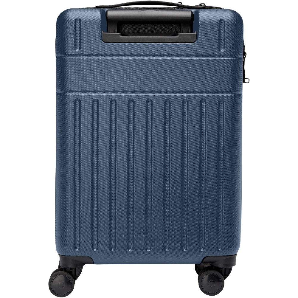 Constructed with impact-resistant recycled plastic and RPET lining, the 20? Rover cabin trolley stands for quality. It features a double-tube aluminium frame, 360 degree 4-wheel spinner, an integrated TSA combination lock, an easy grab handle for comfort, and interior divider organiser compartments. Can be brought as hand luggage on most mainstream airlines. This trolley is GRS certified, including the printing, making it a more responsible choice.