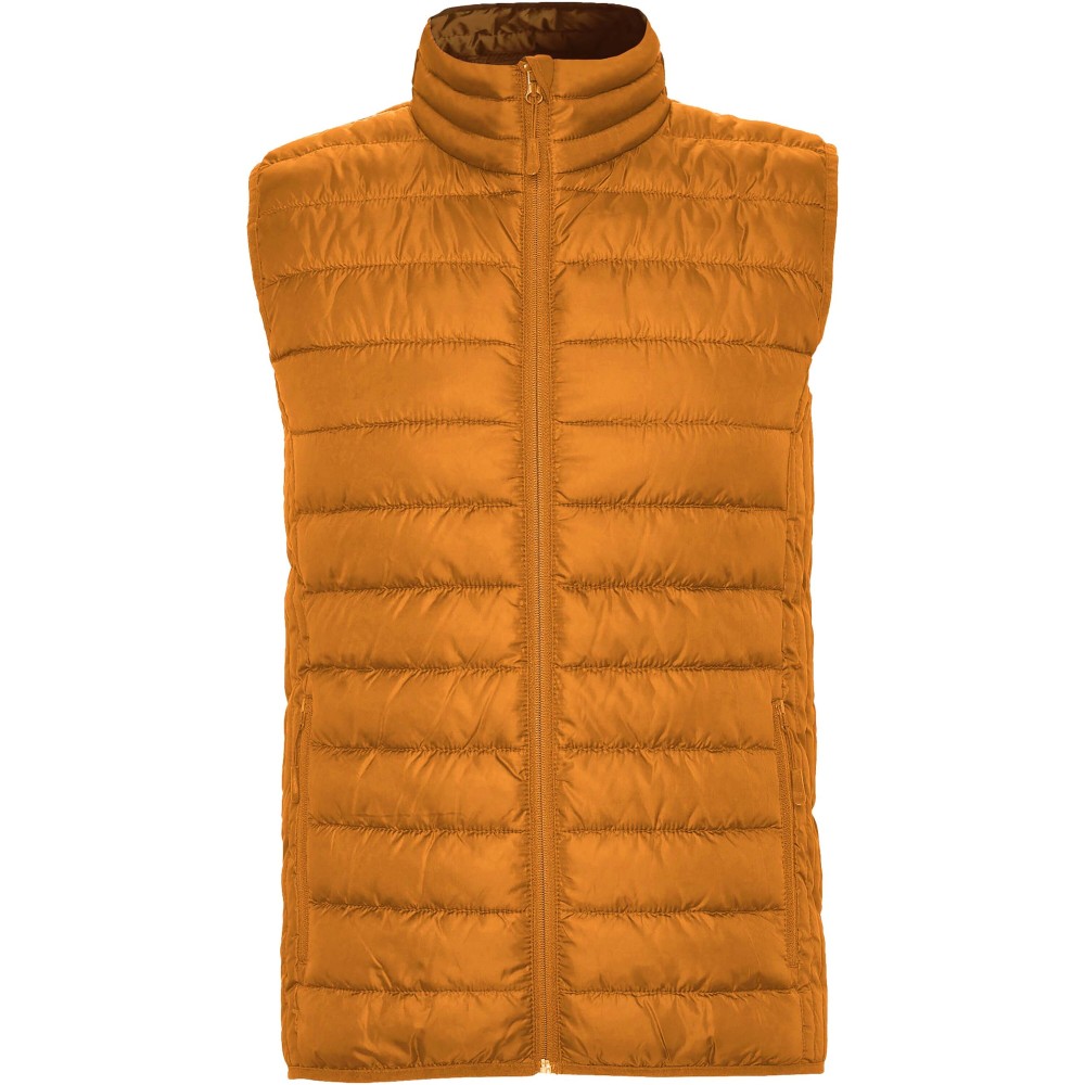 Feather touch gilet vest for men. Matching inverted zips. Two front pockets with zip. Contrasting inner lining. Matching elastic trim in hem. Light and foldable garment. Water resistant. Wind-proof model. The model is 185 cm and is wearing size M.